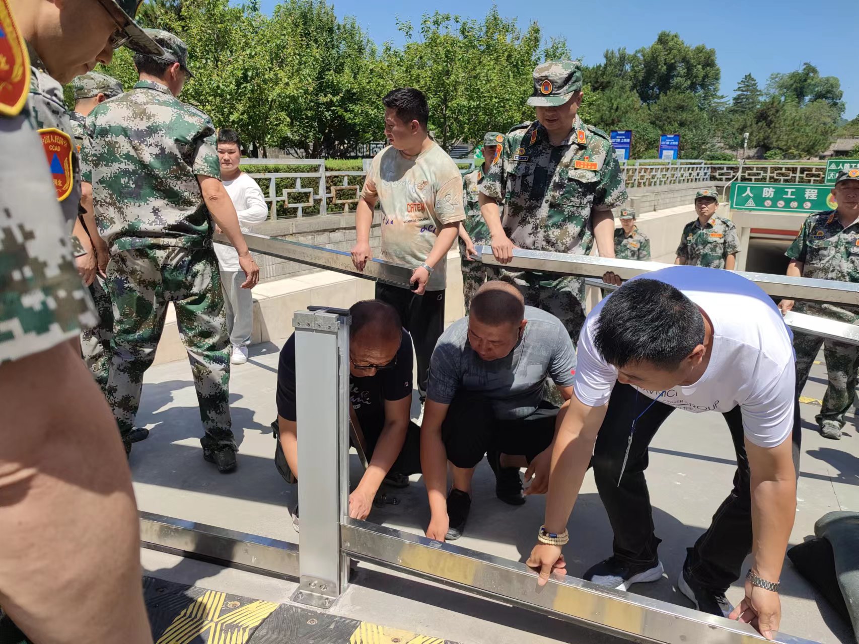 進(jìn)入汛期以來,市國控集團停車場公司把防汛工作擺到了突出位置,為提高員工防汛搶險的應(yīng)變能力,切實做好汛期防洪防汛各項工作,確保國有資產(chǎn)安全,人民群眾生命財產(chǎn)安全,2022年7月7日,停車場公司聯(lián)合市人防辦在兩宮門地下停車場進(jìn)行了防汛應(yīng)急演練。本次演練內(nèi)容主要是安裝地下停車場入口防洪擋水板、并用沙袋堵住停車場入口,防止雨水倒灌。