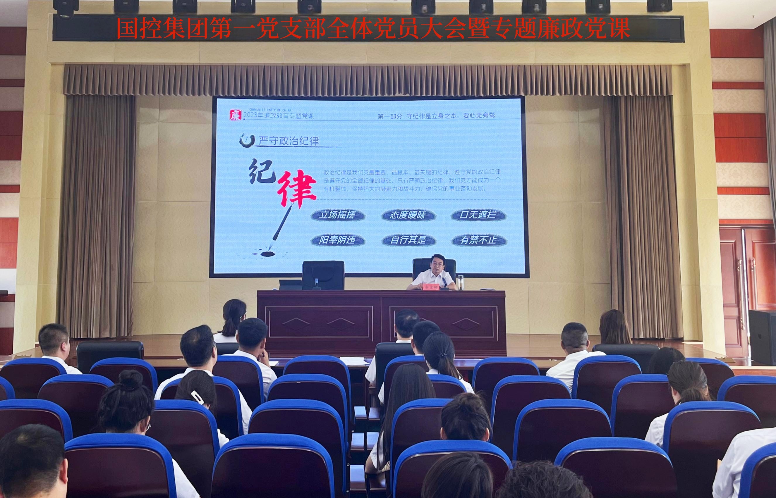 6月16日上午,國控集團第一黨支部召開全體黨員大會暨專題廉政黨課。集團公司黨委書記、董事長張建軍出席會議并作廉政黨課。黨委委員、紀(jì)委書記房寶軒主持會議并作廉政黨課,一支部全體黨員參加了會議。